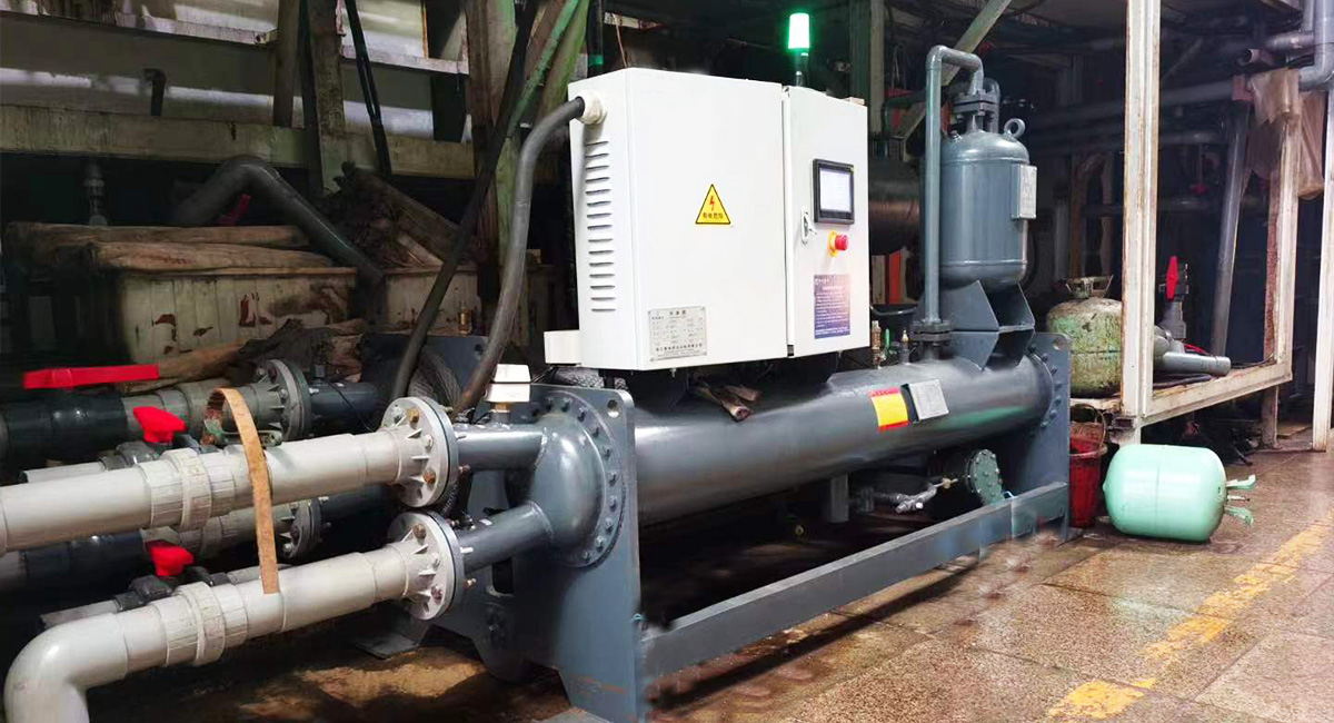 水冷冷水機利用殼管蒸發(fā)器使水與冷媒進行熱交換,冷媒系統(tǒng)在吸收水中的熱負(fù)荷,使水降溫產(chǎn)生冷水后,通過壓縮機的作用將熱量帶至殼管式冷凝器,由冷媒與水進行熱交換,使水吸收熱量后通過水管將熱量帶出外部散失。